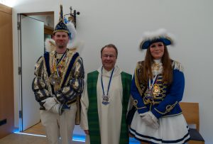 Greven – Farbenfrohe Uniformen, glänzende Standarten und fröhliche Gesichter: Am Samstag verwandelte sich die St.-Josef-Kirche in ein Meer aus Karneval. Zahlreiche Mitglieder der Grevener Karnevalsvereine feierten gemeinsam einen festlichen Gottesdienst – angeführt von Stadtprinz Jannis I. und Püntemariechen Dana. Mit dabei: die Abordnungen der KG Emspünte, des CCFfL, der KGeht noch was, des KA-Ki-V und der ReKaGe. Doch wer dachte, Pfarrer Mombauer würde sich von der närrischen Übermacht zu sanften Worten verleiten lassen, lag falsch.